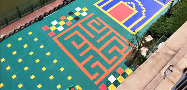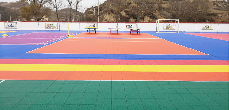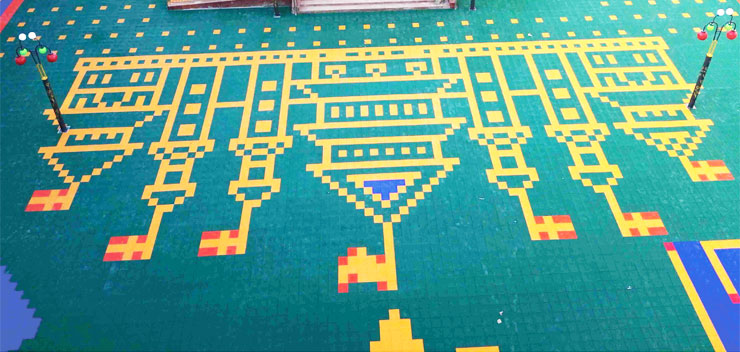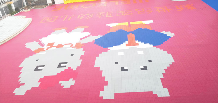 拼裝運動地闆花型紋理(lǐ)豐富、色彩多樣,更有場(chǎng文市)地拼裝圖案設計服務(wù);